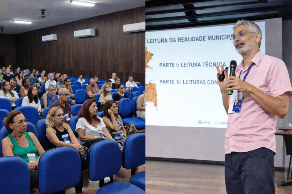Na sequência, foram apresentados os resultados do diagnóstico técnico da realidade municipal, em exposição conduzida pelos arquitetos Paulo Henrique Alonso, Fernanda Cardoso e Clarissa Alexandrino, integrantes da equipe do Intec – Instituto de Pesquisa, Gestão e Tecnologia, contratado pela Prefeitura de Cataguases para a realização dos estudos. A apresentação reuniu análises técnicas e os dados das 16 leituras comunitárias realizadas em diferentes regiões do município, incluindo os distritos. Ao todo, mais de 170 moradores participaram diretamente dos encontros, contribuindo com percepções, demandas e propostas.